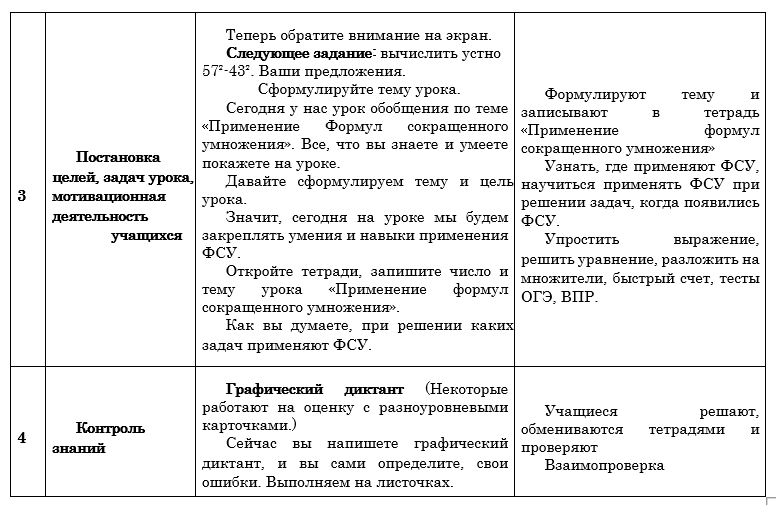 Цель: систематизировать знания и умения учащихся по теме «Формулы сокращенного умножения» и научить учащихся применять формулы сокращенного умножения при выполнении упражнений различной сложности и творческих заданий.
