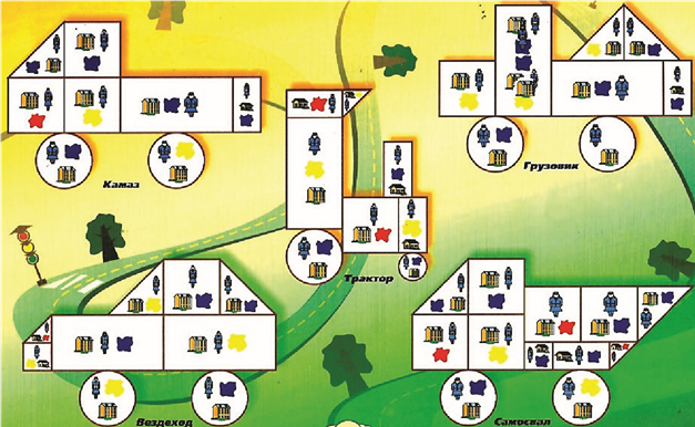 После того, как участники игры справятся с заданием им предлагается проявить инженерные и конструктивные умения при сборке личного транспортного средства, на котором продолжится путешествие. Для этого команде (ребенок-родитель) или (ребенок-родитель-педагог) предлагается выбрать схемы составления транспорта.